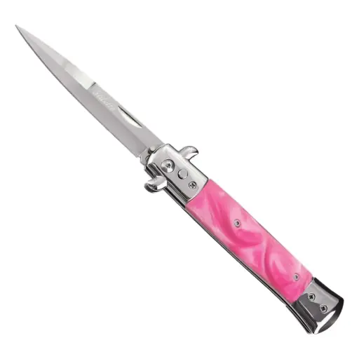 Marble Rose Quick-Click Stiletto Automatic Knife - Pink Marble