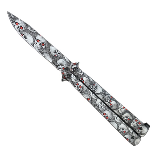 Red-Eyed Skull Grip Butterfly Knife - Matte Silver