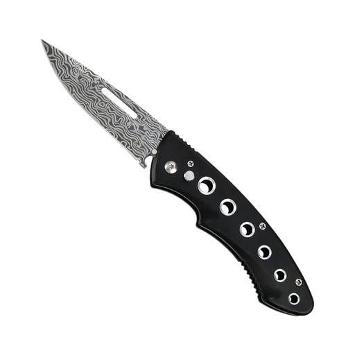 Prismatic Damascus Quick-Deploy Automatic Knife - Black Aluminum